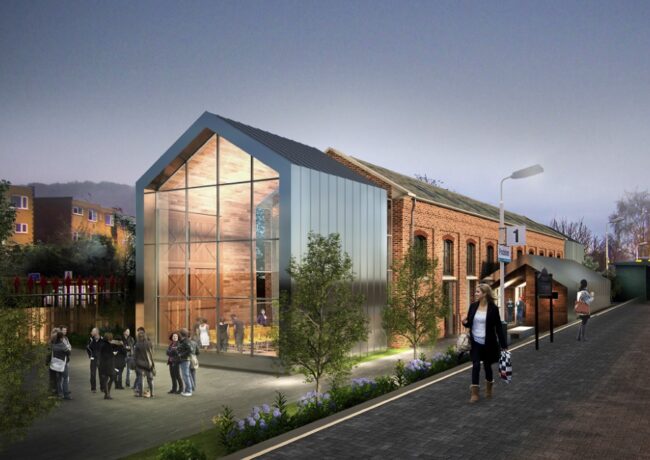 Lewis & Hickey was one of three practices shortlisted for the project, and won a public vote for the best design. The plans will see a two-storey extension to the warehouse, with the main body of the building for community and small business use.