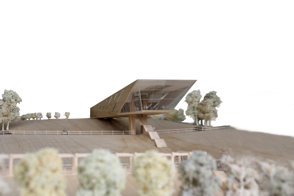 "We explored the notion of 'reveal' by combining the landscape with a linear east to west facing building so that the full panorama is concealed and only revealed once the visitor reaches the tip of the building, maximising the impact of the vista and enhancing the visitor experience."