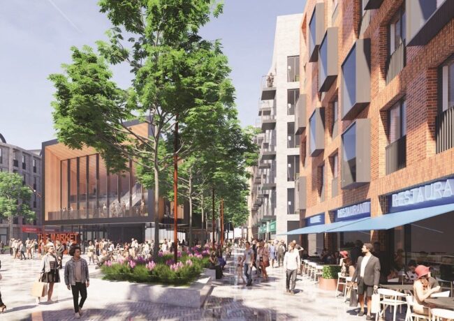 There would also be a linear park and spaces for café-bars, delis, a ‘mini-cinema’, gym and co-working facilities, according to the developer. The site is a short walk from Farnworth train stations, with routes into Bolton and Manchester, and close to the town’s refurbished bus station. BDP is the architect for the scheme.