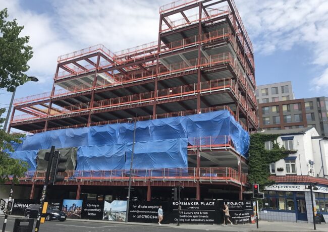 With the steel construction frame complete, Liverpool’s Legacie Developments said that it will open its 74-apartment scheme at Renshaw Street early next year.