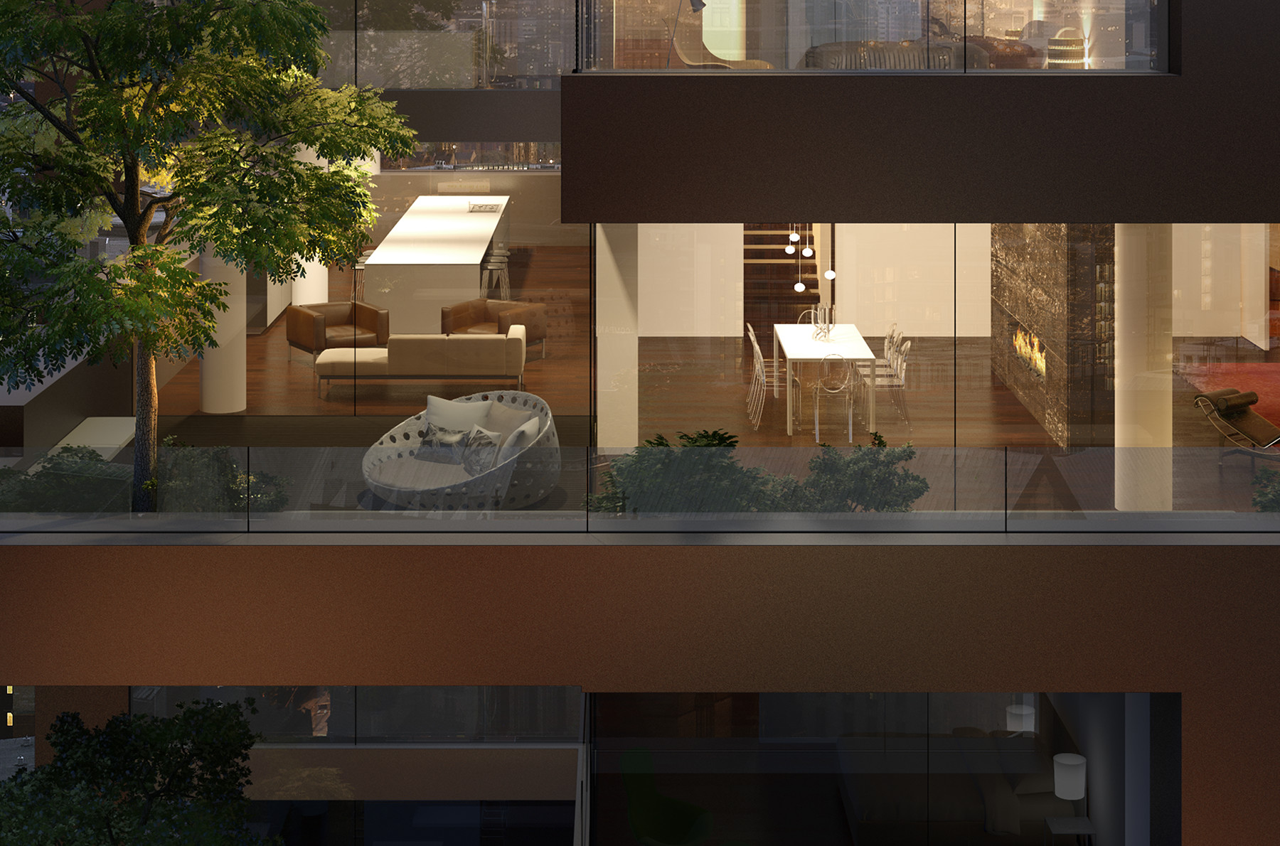 - Exterior looking into apartments