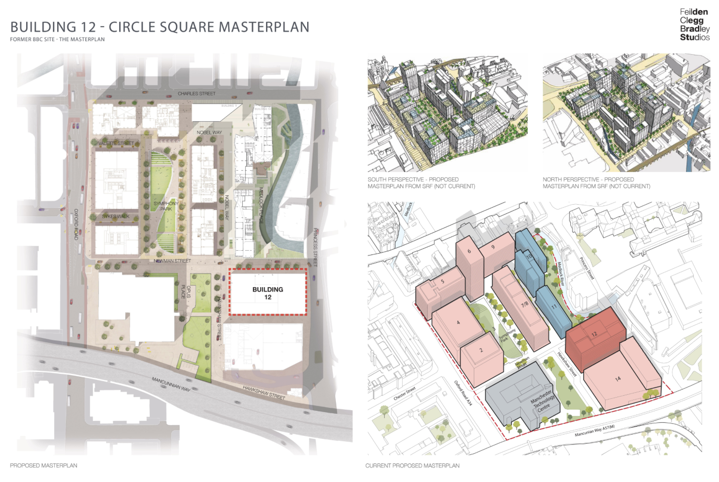 The block at plot 12 of the Circle Square masterplan has been designed by architect Feilden Clegg Bradley and was showcased at the consultation event last night.