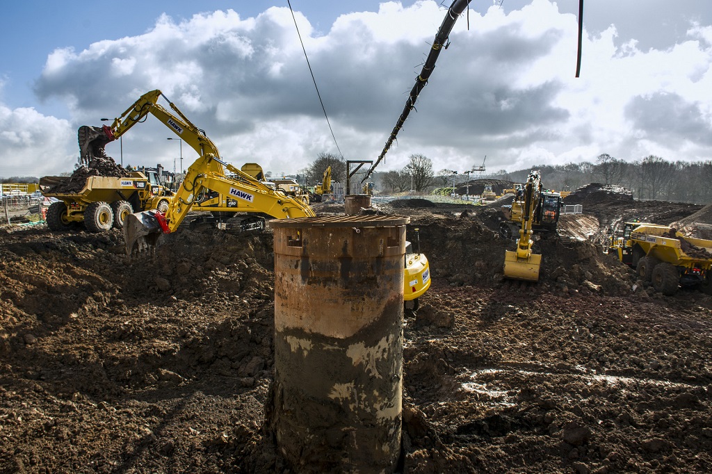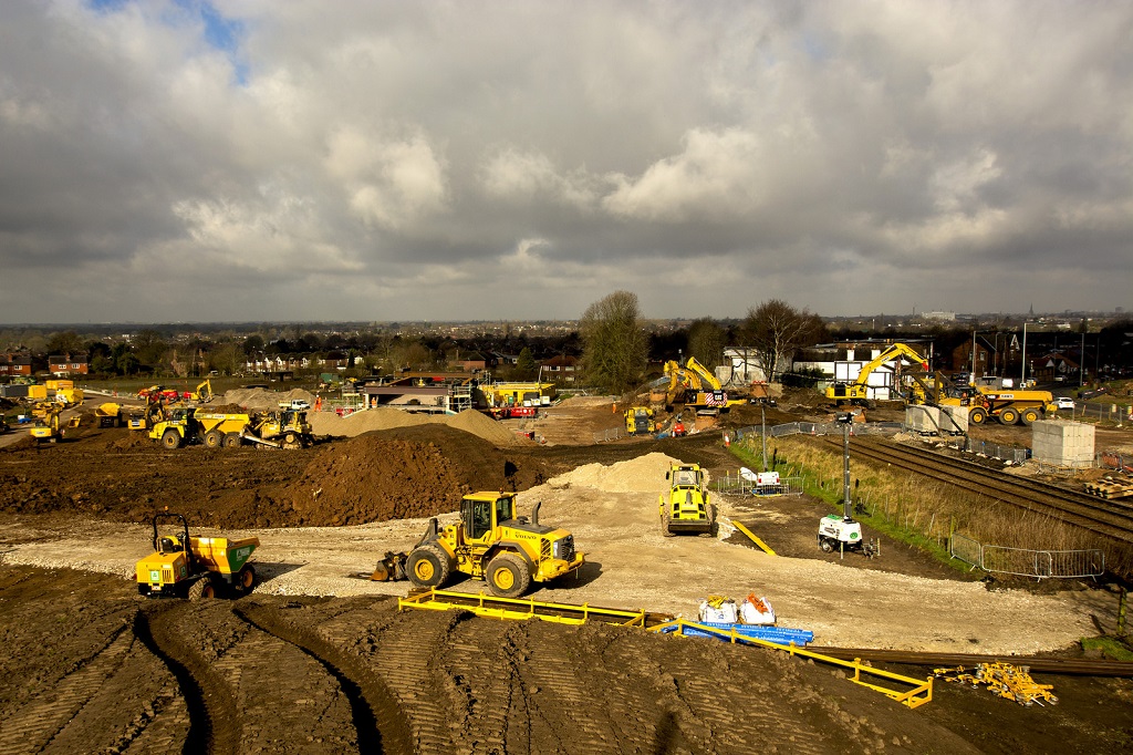 One of 12 bridges planned along the relief road, the Hazel Grove to Buxton rail bridge is the largest single structure of the entire project. As well as allowing the new dual carriageway and a dedicated cycle/footpath to pass under the rail line, the bridge has been designed to provide access points for farm vehicles allowing them to access neighbouring fields.