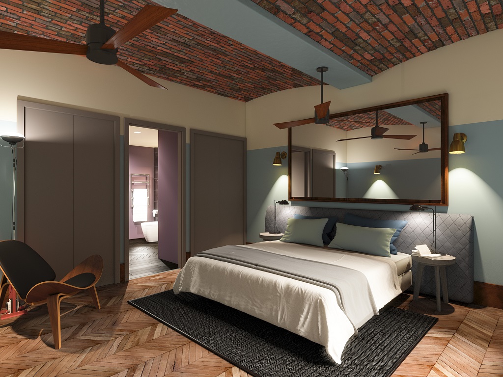- A hotel room that will be part of London Warehouse's 166 apartments