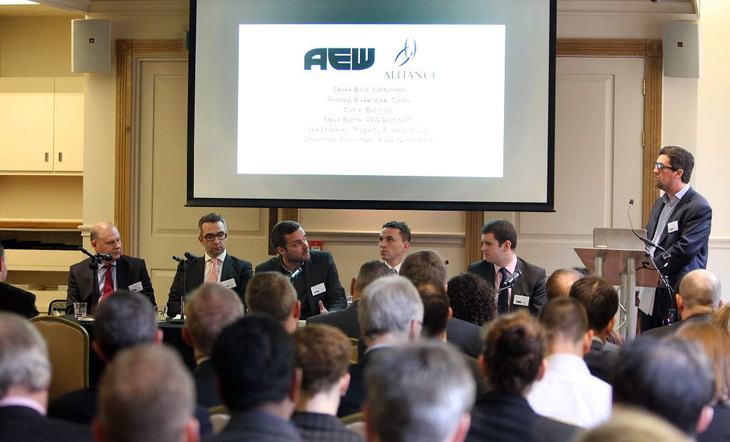 On the panel was Lee Charnley, director of investor and developer Property Alliance Group; Steve Burne, managing director of AEW Architects; Andrew Bickerdike, associate director at planning consultancy Turley; Daniel Burn, director of JLL; and Derek Bald, divisional head of real estate finance at Santander.