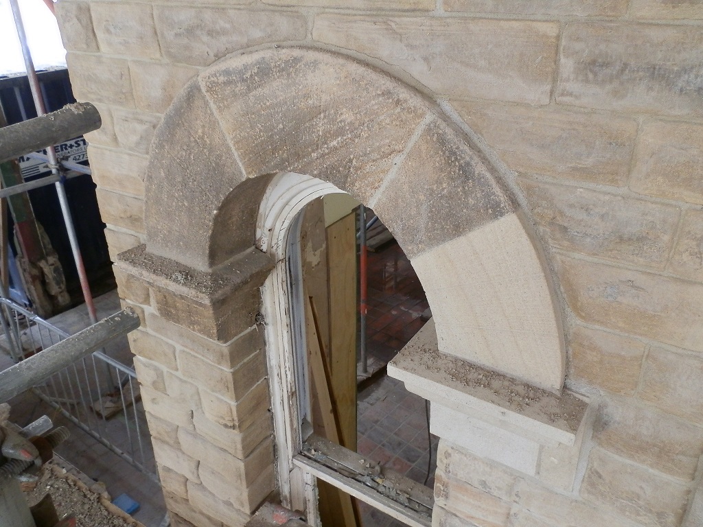 The new slate roof is almost complete and glazing has been installed to the upper section, with lower roof glazing now being put into place. Stonework repair and replacement should be completed by the middle of September.