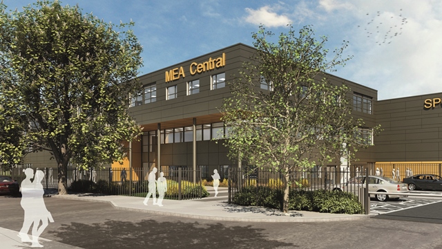 The development includes sports halls and sports pitches, which will also be open for community use at evenings and weekends.