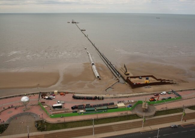 The 3.7km Anchorsholme pipe, believed to be the largest of its kind in the UK, forms part of UU’s £100m five-year programme to improve bathing water quality along the Fylde Coast. The outfall is designed to carry storm waters far enough out to sea that the quality of water close to land isn’t affected.