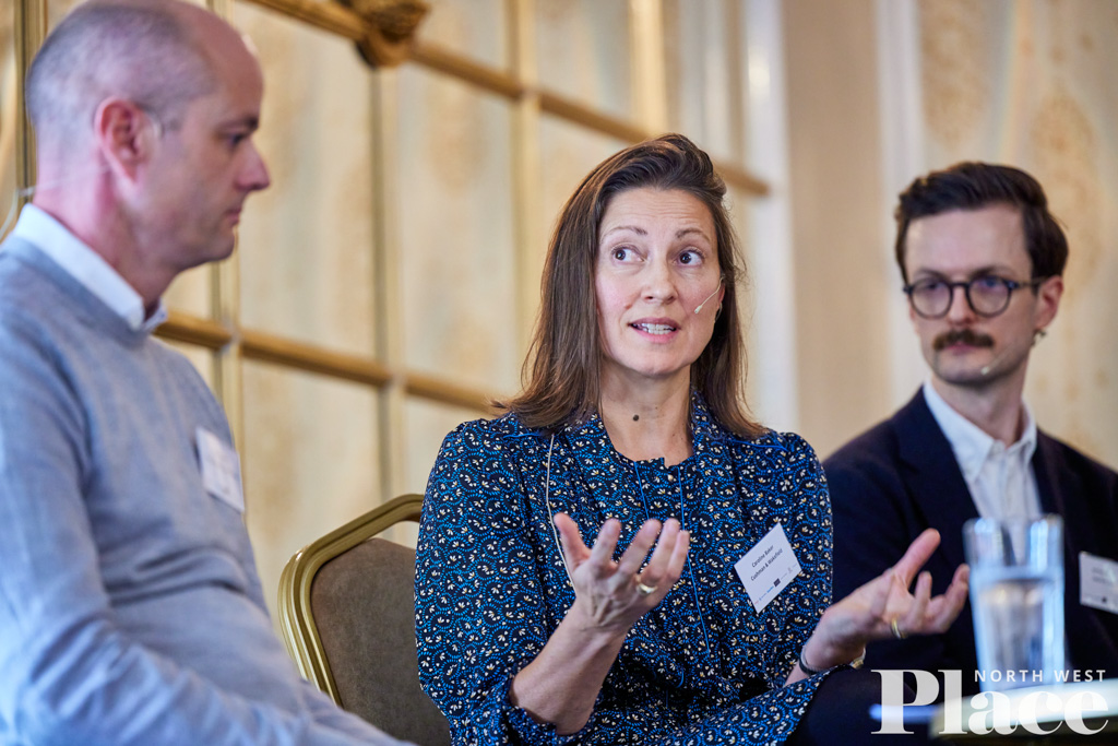 Northstone’s Hannah Flory, Homes England’s Catherine Holmes, and Placefirst’s Darran Lawless spoke about the changing residential scene in towns and suburbs on the second Place RESI panel. Credit: PNW