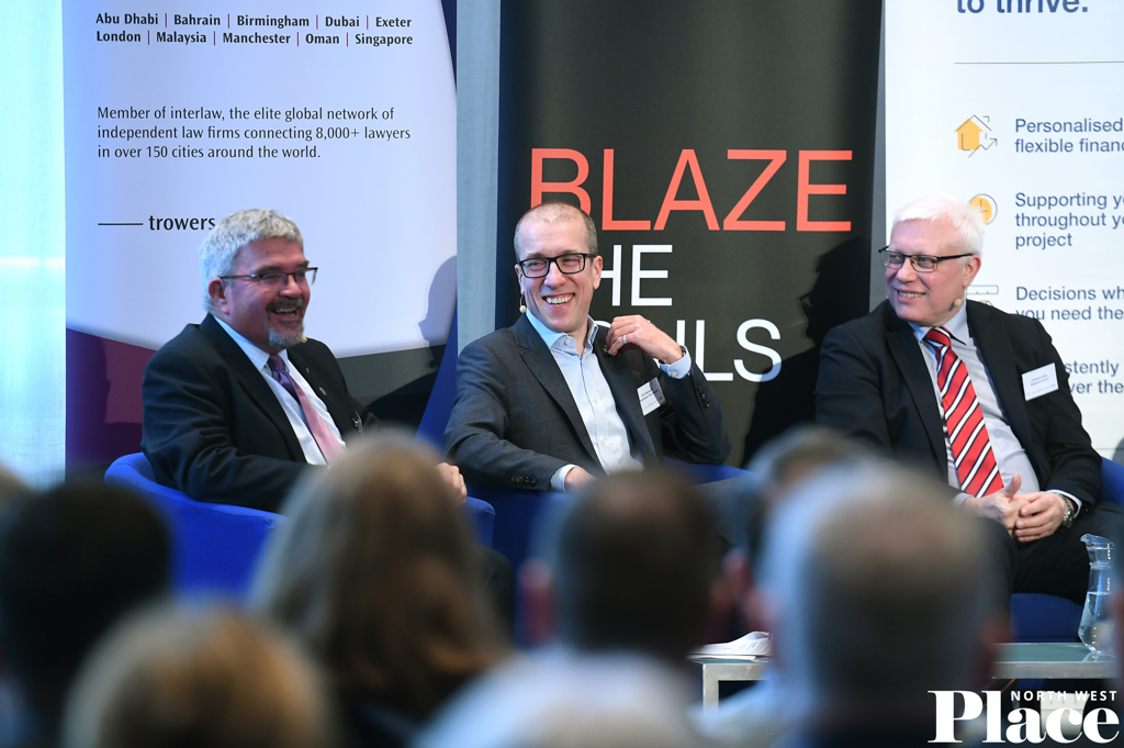 Cheshire East Leader Cllr Nick Mannion, Manchester City Council chief executive Tom Stannard, and Blackpool Council Cllr Mike Smith were on the first panel, alongside Cushman and Wakefield’s Caroline Baker. Credit: PNW