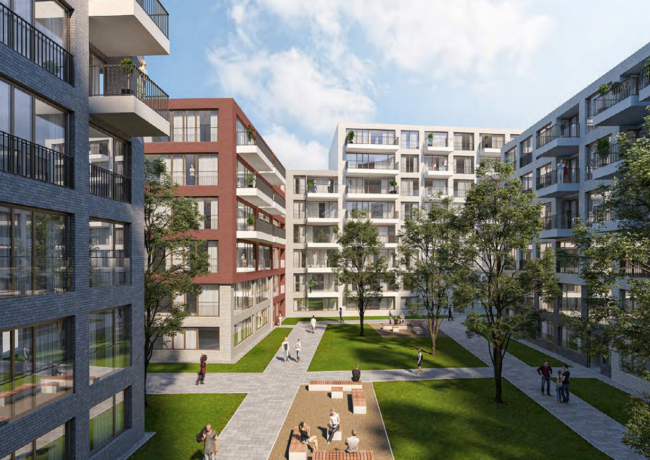 The three stepped blocks range in height from six to eight storeys, dependent on planning permission, and are made up of a range of 294 one-bed and two-bed apartments.
