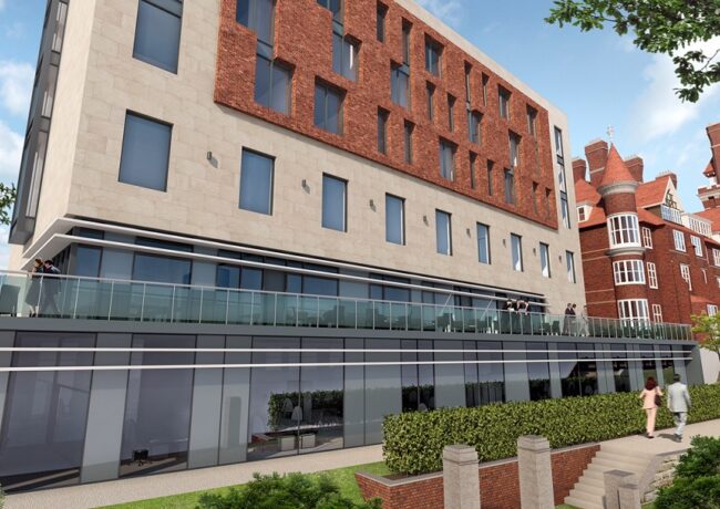 The wider 3.3-acre development involves 71 bedrooms being created in the original Grade II-listed building, while the new building will include 83 bedrooms. Other facilities include offices, a spa, conference facilities, a lounge bar and gym. A 500-capacity banqueting pavilion completes the project. Cassidy + Ashton is the scheme architect.