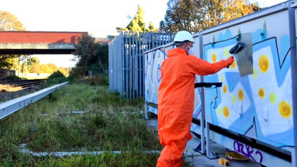 WAR PAINT…We have had the war on terror, war on drugs and now Network Rail is launching a war on graffiti. Teams of highly trained troops are working to clean up a stretch of the railway network in Southport armed with pressure washers and tins of paint. Rail minister Chris Heaton-Harris, said: “We’ve been clear that the blight of graffiti on our railways must be tackled. As we build back better, removing graffiti across the North West will improve our railway and make stations and services more pleasant for passengers.”